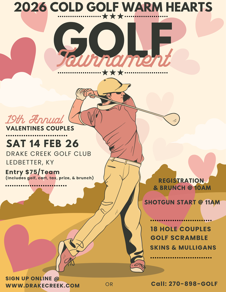 Spots fill quickly—don’t wait! We can’t wait to see you and your valentine at Drake Creek for a day of warm hearts and great golf.