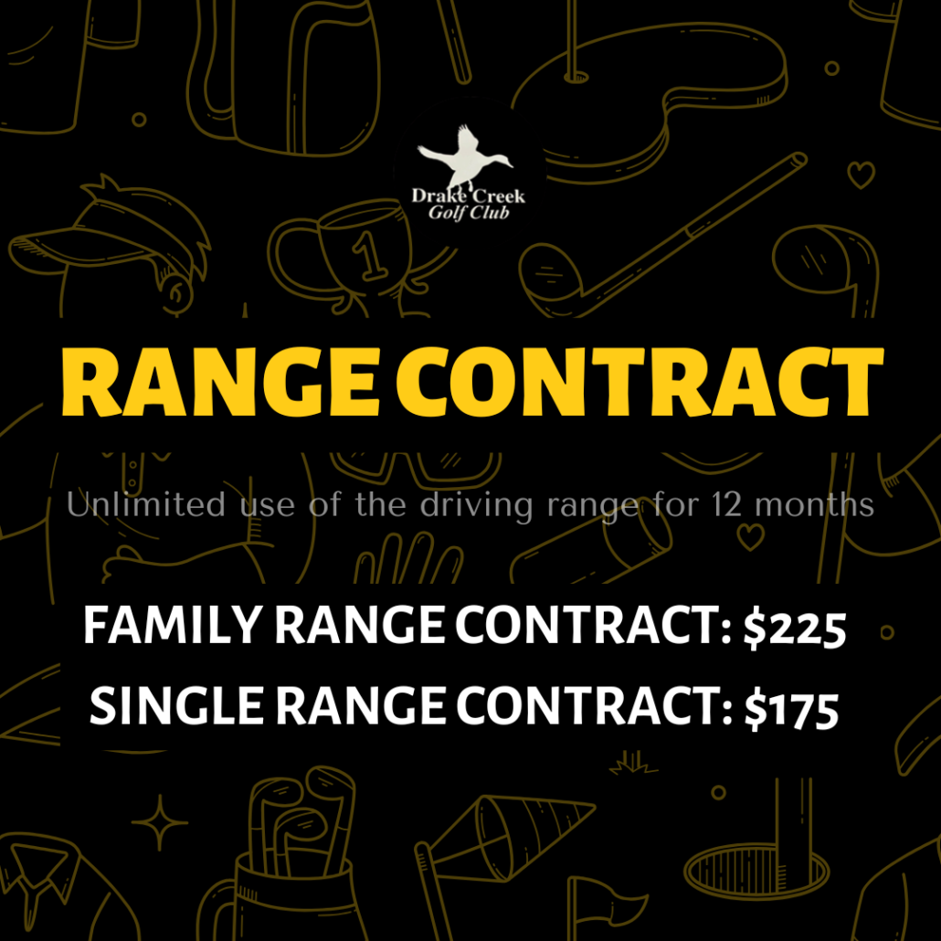 Unlimited use of the driving range for 12 months. Single Membership – $175 (+tax) and a Family Membership – $225 (+tax).